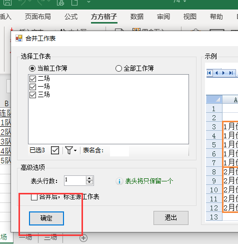 这篇博客介绍了如何使用Excel工具箱中的「汇总拆分」功能,轻松将多个表格数据整合到一个表格中。只需几步操作,包括点击「合并多表」并确认,即可实现数据的快速合并,提高工作效率。