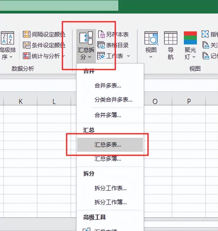 3.点击【汇总拆分】,然后选择【汇总多表】