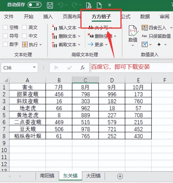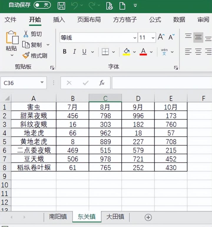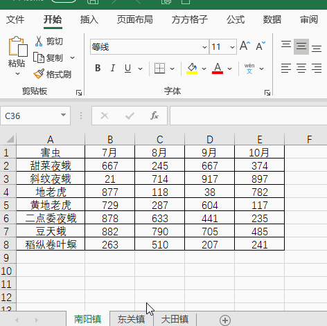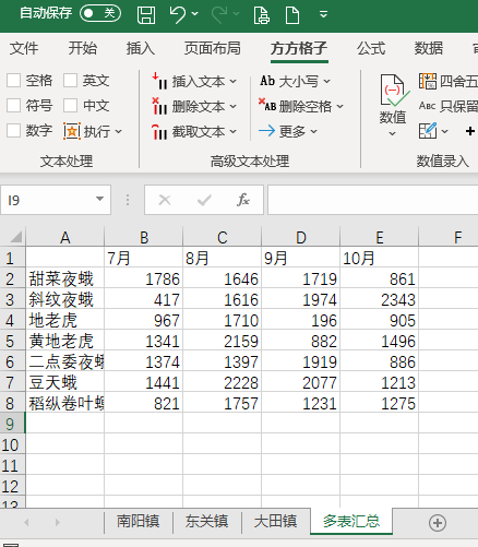 1.如下图是三个地区虫害发生情况表,现在我们想要将这三个表格数据快速汇总出来。