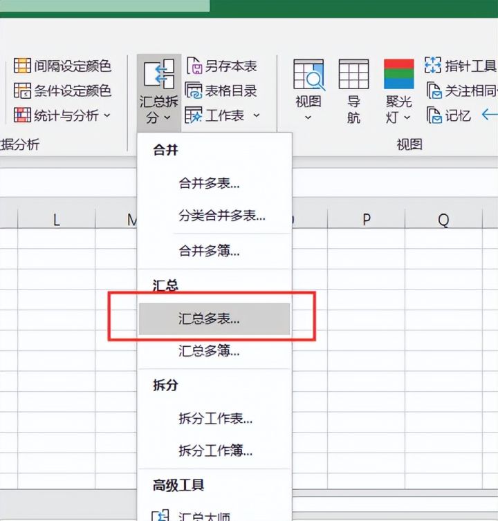 4.点击【汇总拆分】,然后选择【汇总多表】