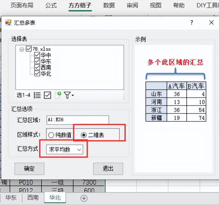 5.勾选【二维表】,然后将汇总方式设置为【求平均数】