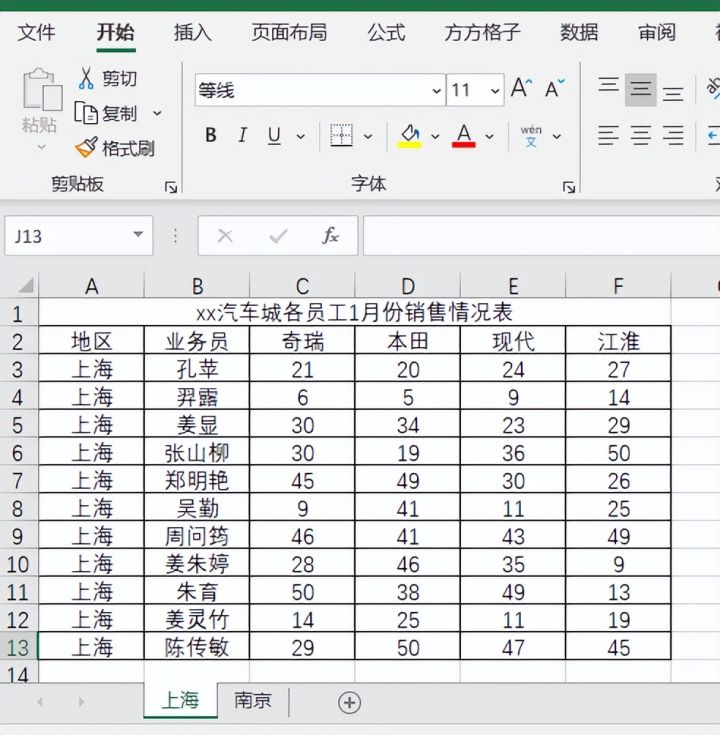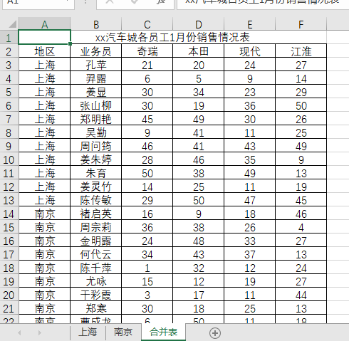 1.如下图是某公司两个分店月报表,现在我们想要将这两个表格数据整理到一个表格当中。