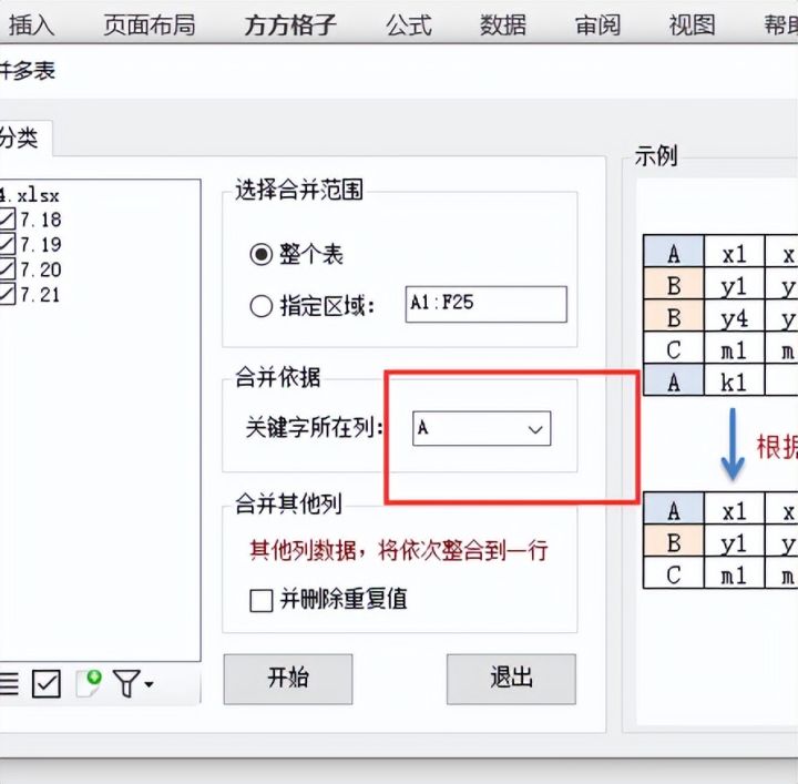 5.在合并依据中将关键词所在列设置为A列