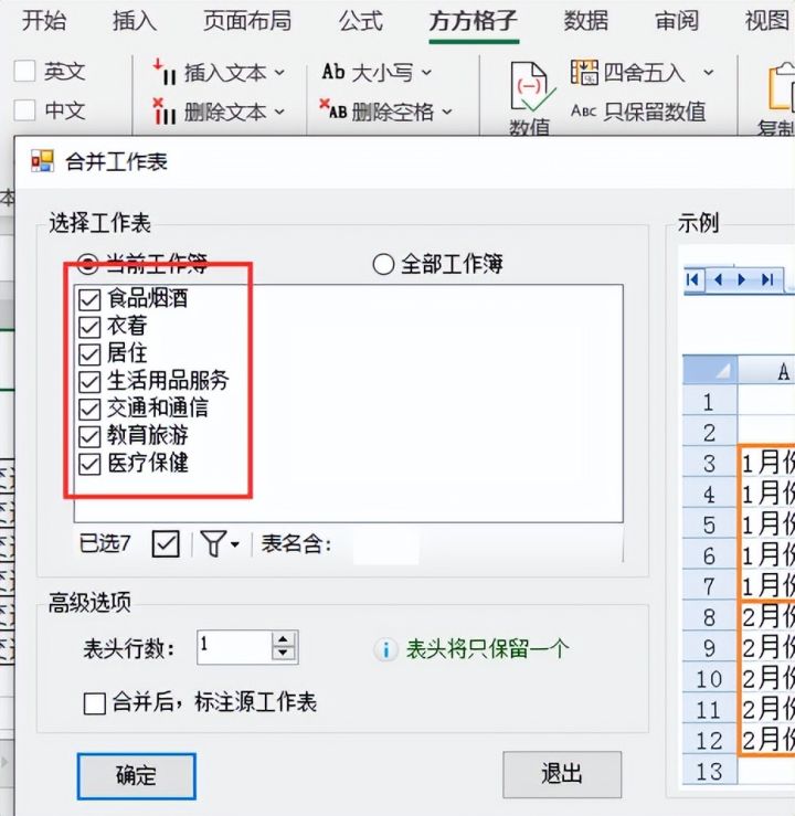 这篇博客介绍了如何使用Excel工具箱中的【汇总拆分】功能,通过简单的步骤将多个工作表的数据合并到一个表格中,方便查看。操作包括选择【合并多表】,勾选所有工作表,设置表头行数,最后点击【确定】完成数据整合。