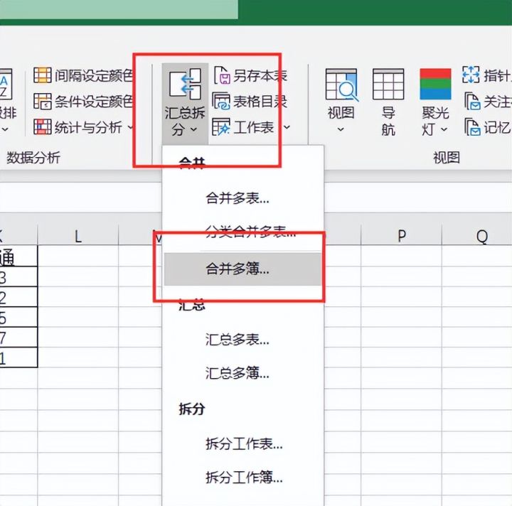 4.点击【汇总拆分】、选择【合并多簿】