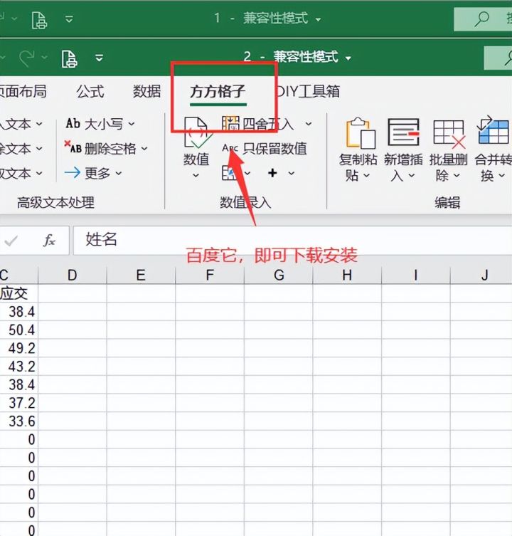 2.点击下图选项(Excel工具箱,百度即可了解详细下载安装信息,本文这里就不做详细解说。)