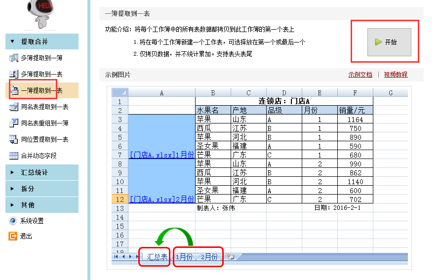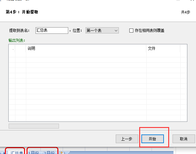 4.点击【一簿提取到一表】,然后我们点击【开始】
