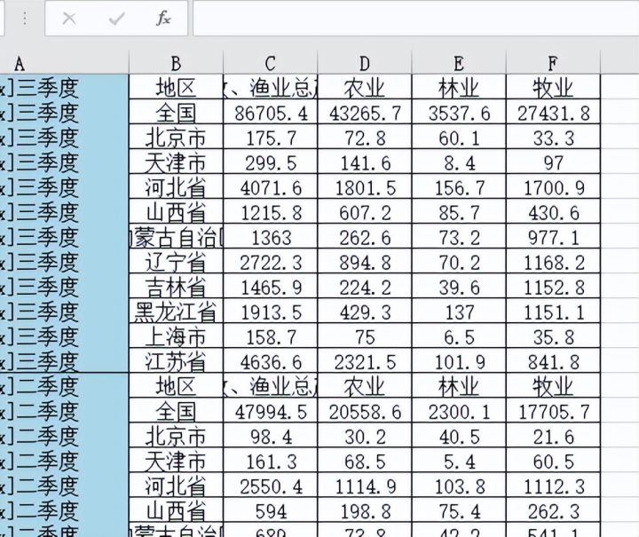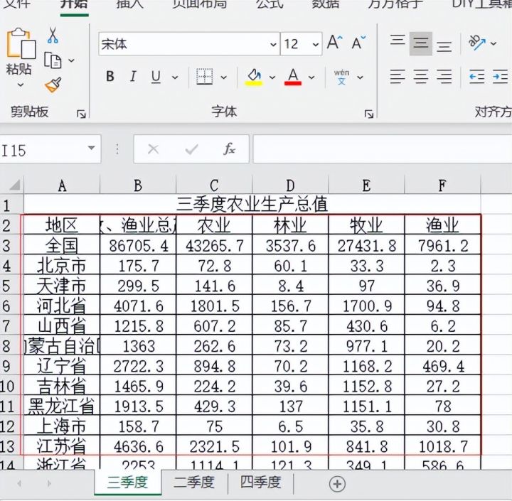 1.如下图我们先要将两个表格A2:E13单元格区域数据合并