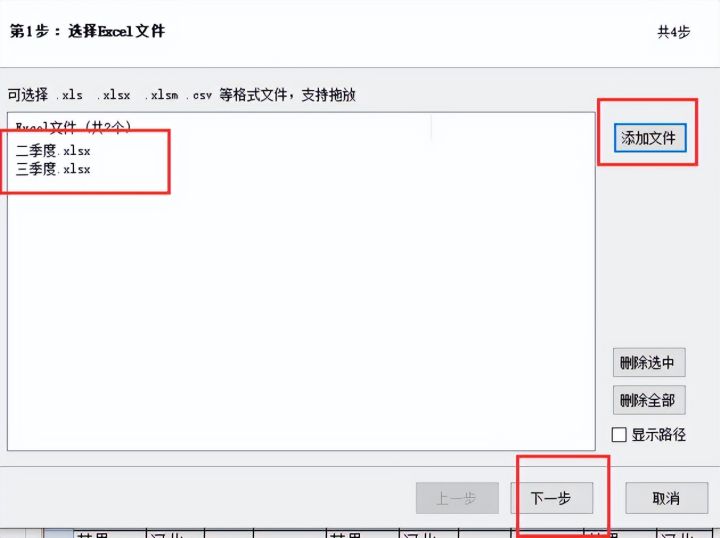 5.点击【添加文件】,将这两个要合并的文件添加进去,接着点击【下一步】