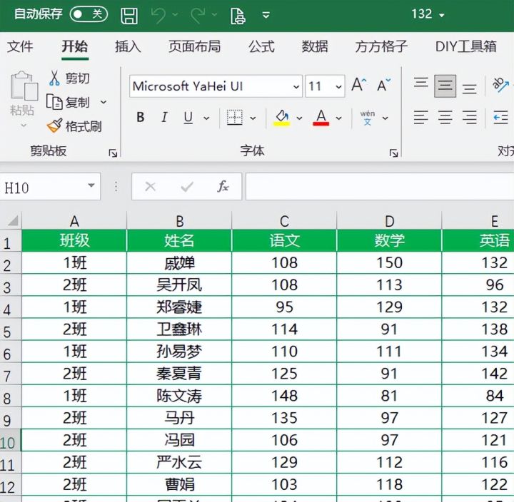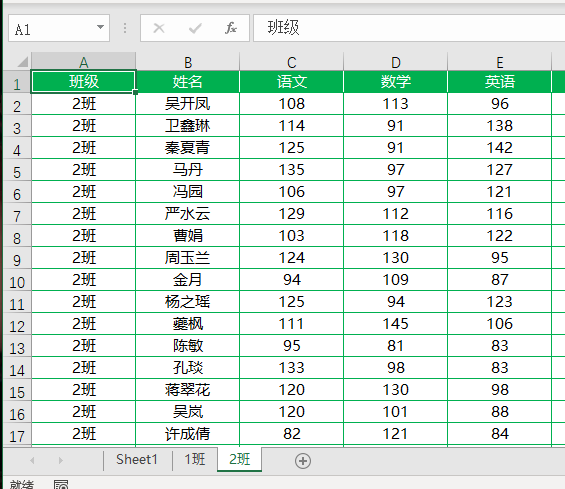1.如下图,是某班级考试成绩表格,领导要求我们将表格数据按照班级拆分开