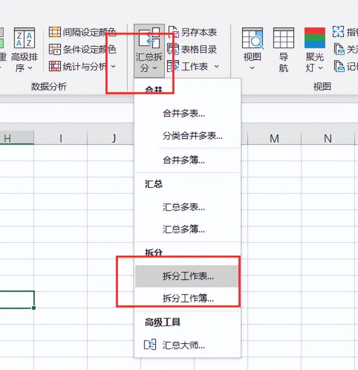 3.选择汇总拆分,点击拆分工作表