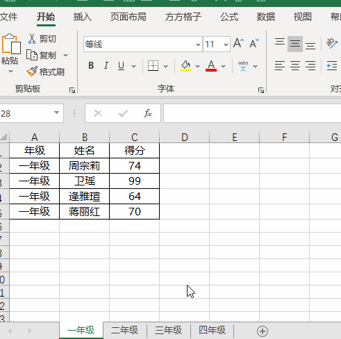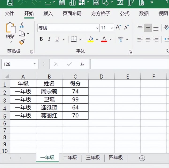 1.如下图excel工作簿中含有多个表格,现在为了方便查看我们想将这四个表格合并到一个表格中。