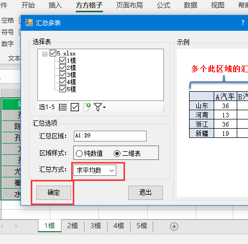 6.将【汇总方式】设置为求平均数,然后点击【确定】即可完成