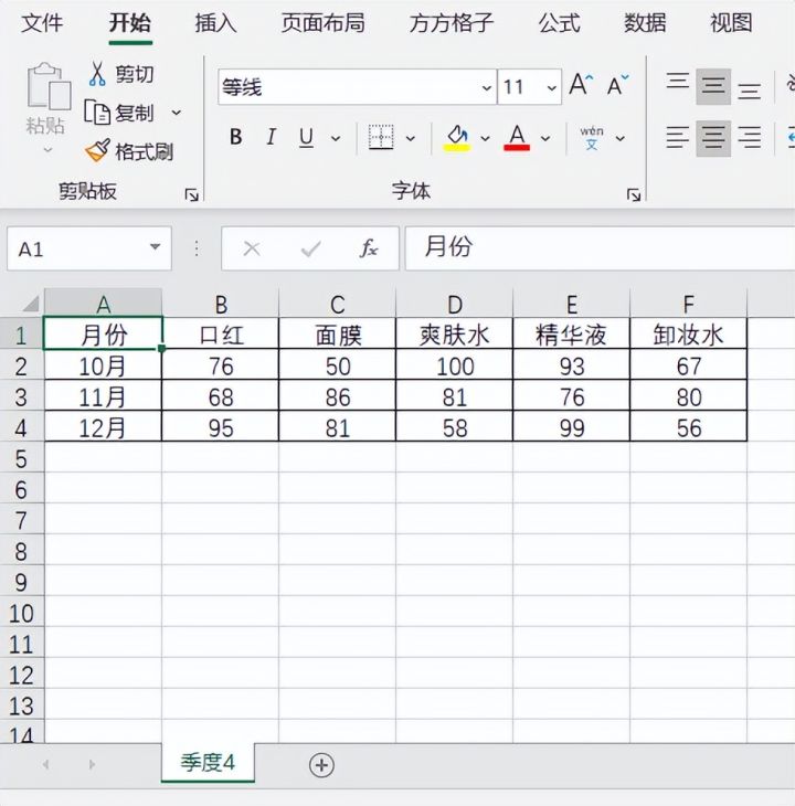 1.如下图是某公司全年四个季度的销售表,现在我们想要将这四个工作簿合并到一个工作簿中