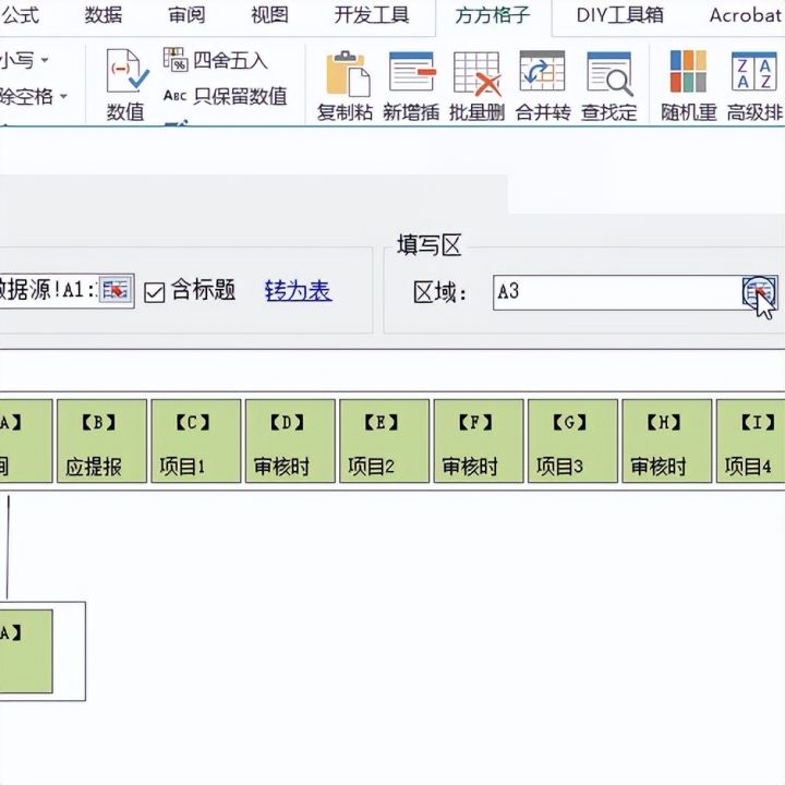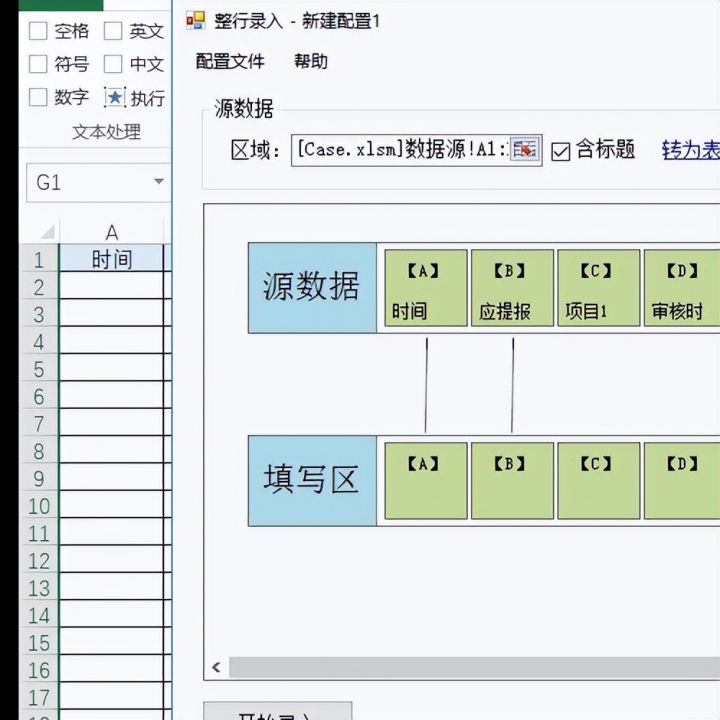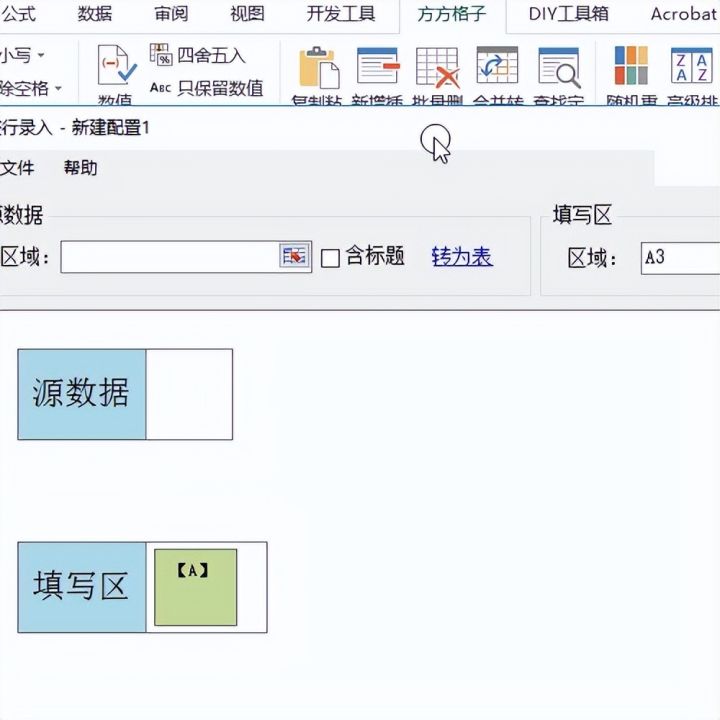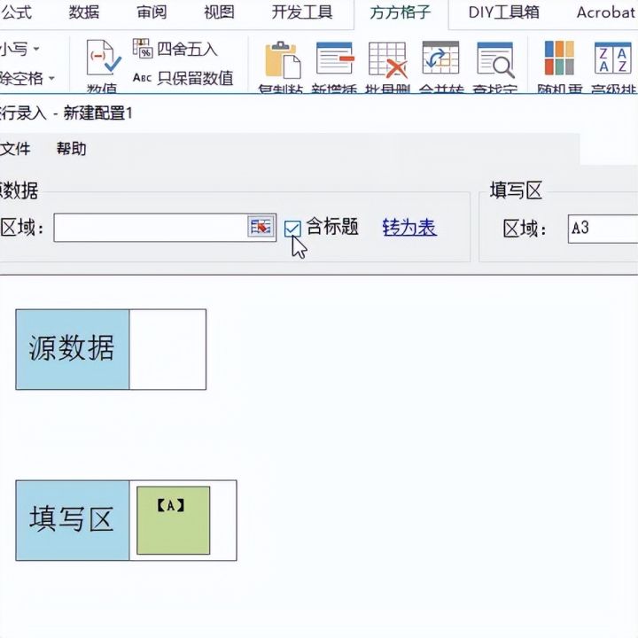 4.弹出对话框,我们很容易看懂,需要设置2个区域也就是源数据和填写区域