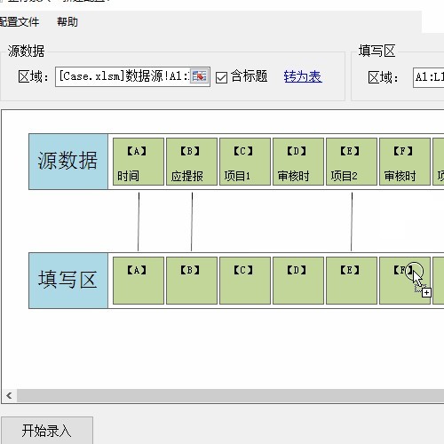 9.好了剩下的就简单了,将源数据区域字段对应的拖拽到填写区域字段列