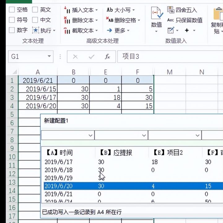 先看下表的举例,我们有个庞大的数据源信息,现在想要有选择的录入,也就是只录入项目2的数据,而且要求只要选择指定日期,所有的数据就都整行录入了,如何实现呢,