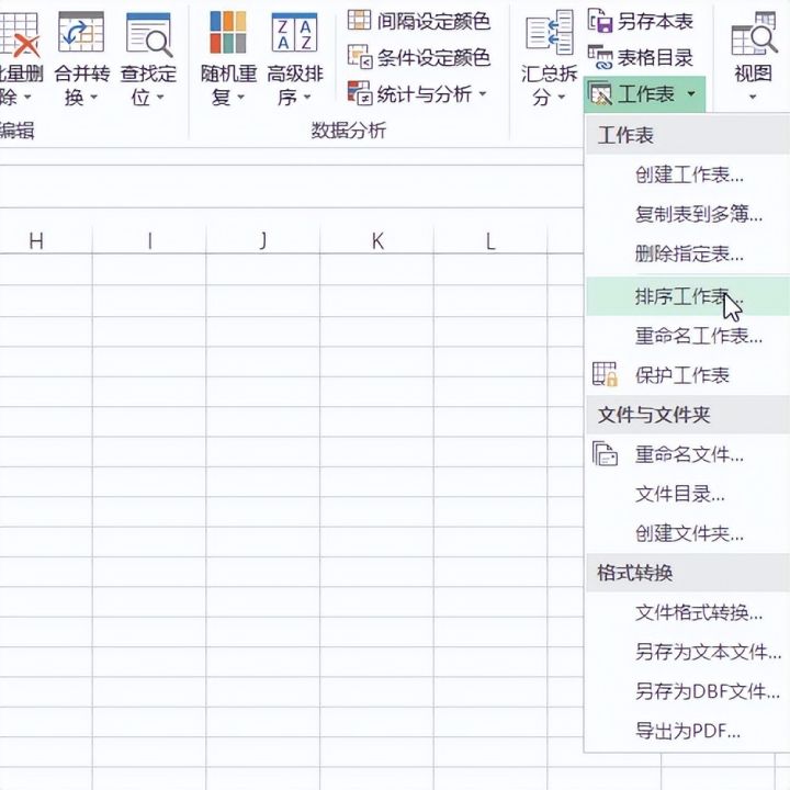 2.选择工作表选项中的删除工作表