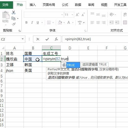 4.接着输入true参数,意思是获得拼音的首字母