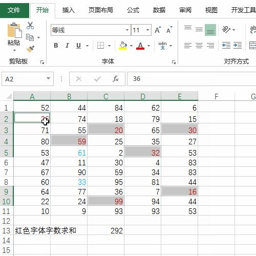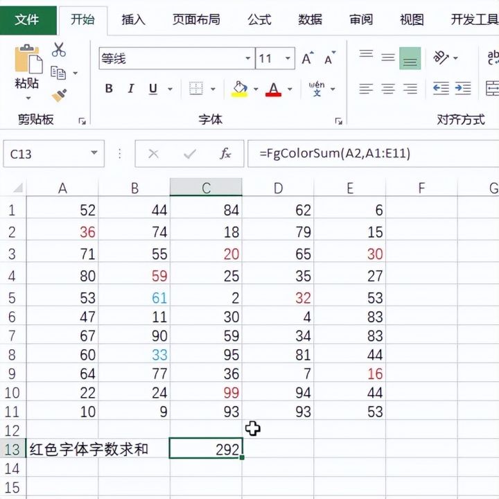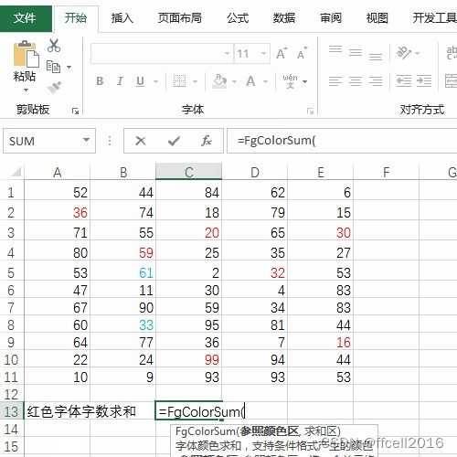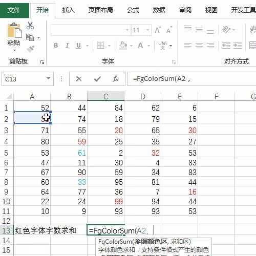 开始之前呢,大家需要下载安装方方格子函数扩展包,今天的这个分享呢。就是通过fgcolorsum来根据字体颜色呢进行求和。先看动图操作吧。