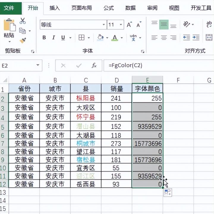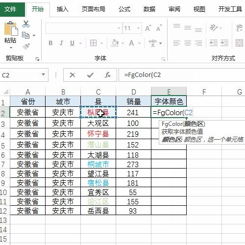 开始之前,需要下载安装方方格子函数扩展包,然后呢看下图,需要提取县的字体颜色的码值