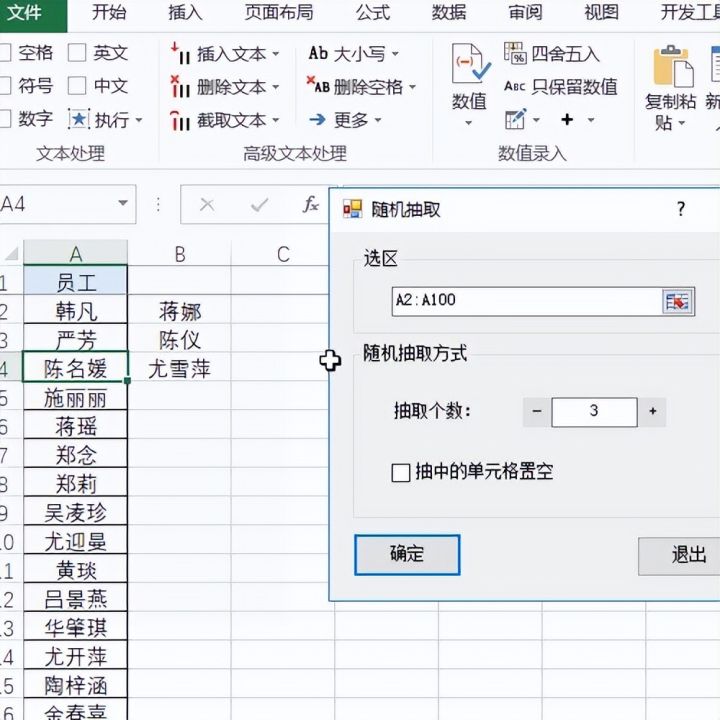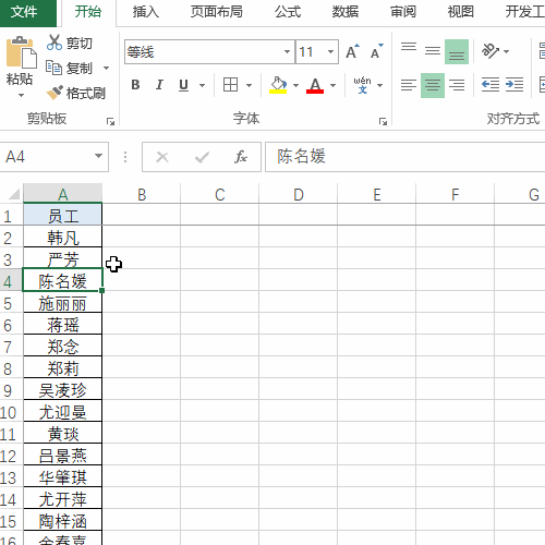 今天小编带大家放松一下,公司年会到了,下图是一个员工姓名表,领导要求会议期间搞一个随机抽奖的小环节,那如何设置呢,先看动图演示吧