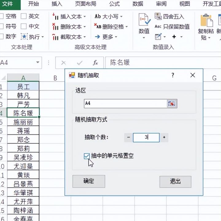 5.然后将抽中的单元格置空去掉勾选