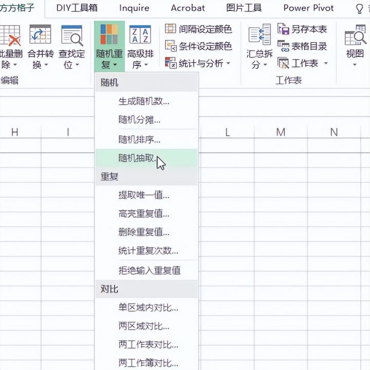 3.选择下拉菜单中的随机抽取选项