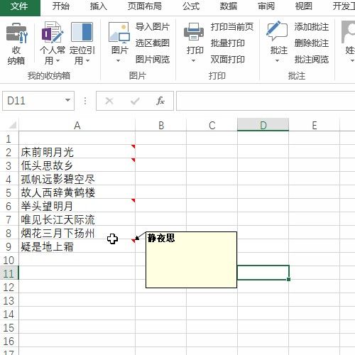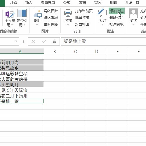 今天分享的是选择性的对单元格添加相同的批注,比如下图找出是‘静夜思’的诗句,如何操作呢