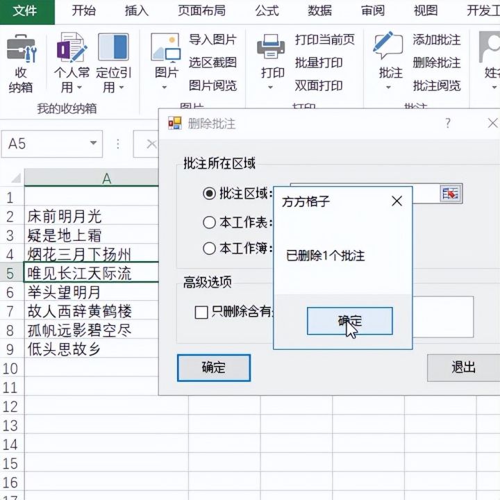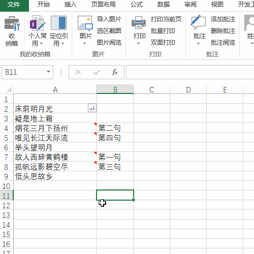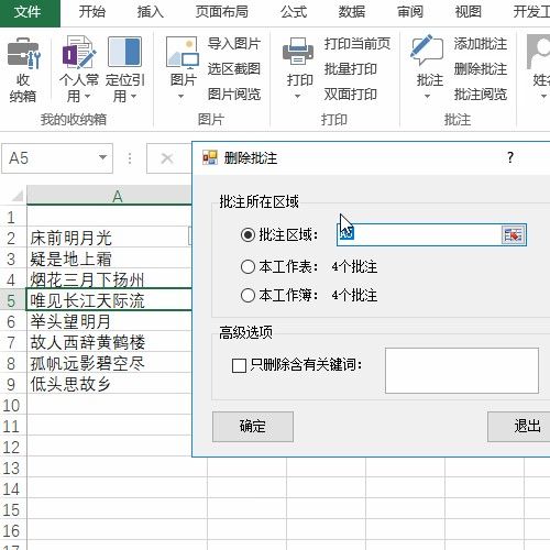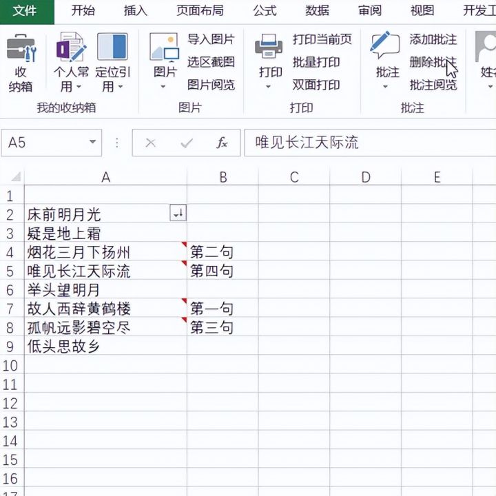 今天要和大家分享的是删除工作表中指定单元格的批注,如下图我只想删除诗句中第四句的批注,如何操作呢