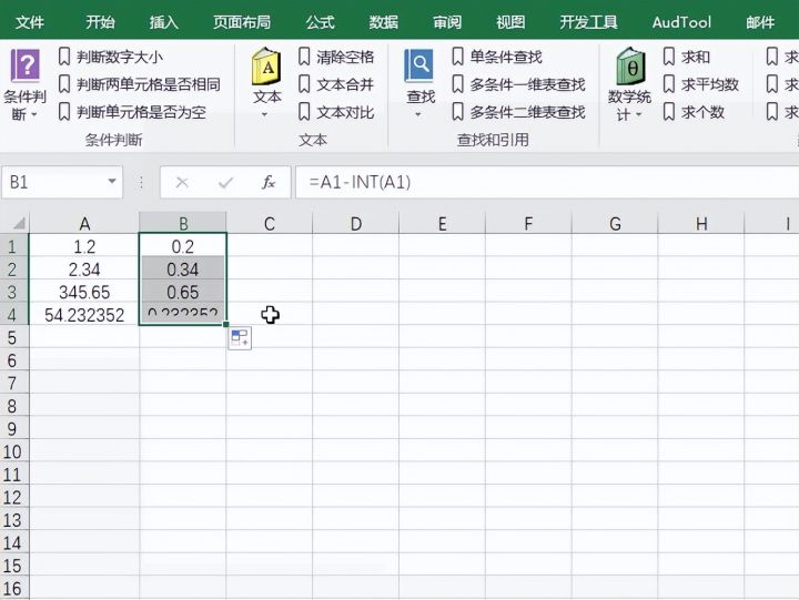 10.好了同样的操作,下拉复制即可得到全部的小数
