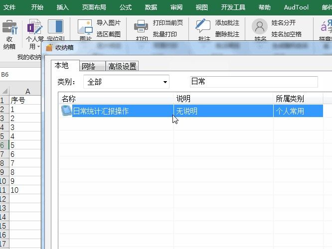 2.选择收纳箱,在本地搜索操作名,找到收藏的那个操作