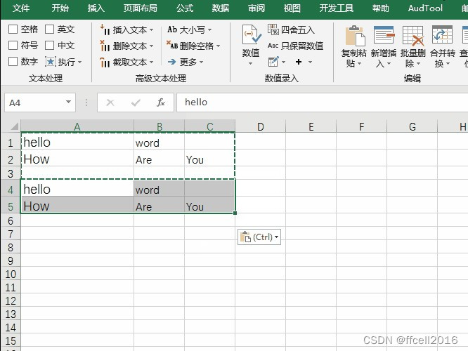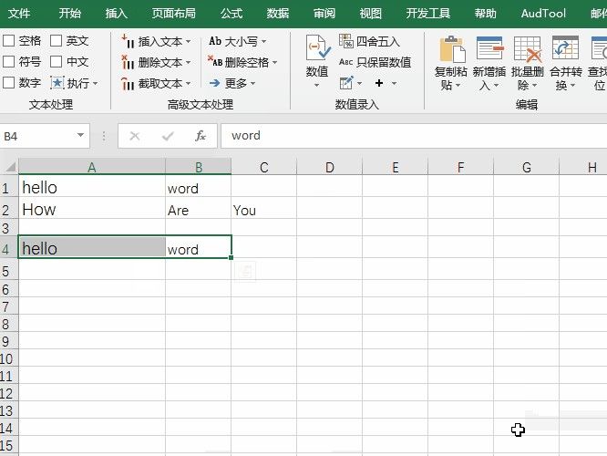 2.首先我们在数据下方复制一段内容出来,进行比较演示
