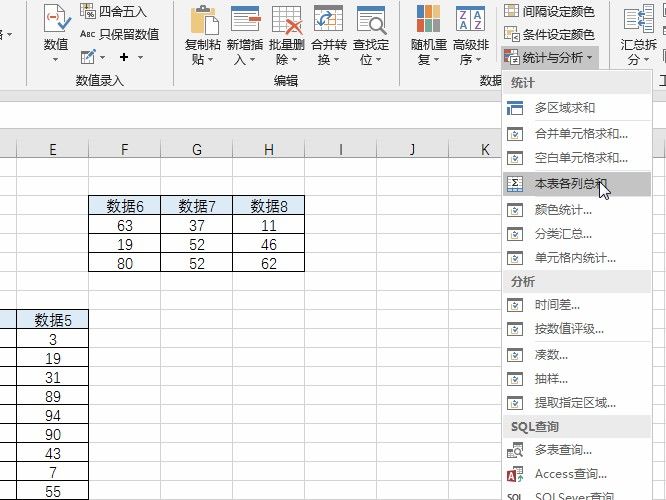 4.选择本表各列总和的操作