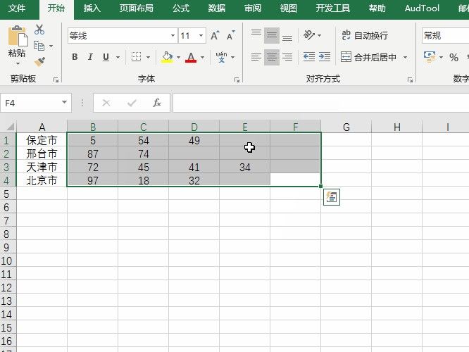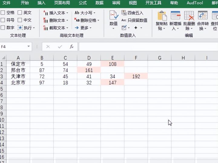 如下图所示想在每一行的最后一个空白单元格对左侧的数据进行求和操作