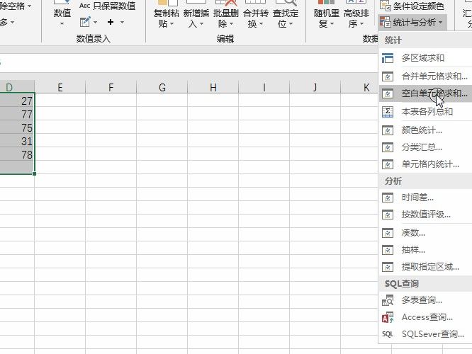 4.然后选空白单元格求和操作