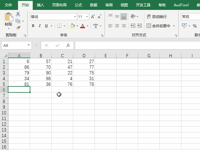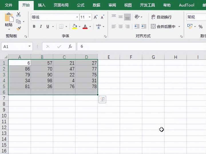 1.选中数据区域,注意这里要留出求和区域的空白行或空白列,如下图的第6行