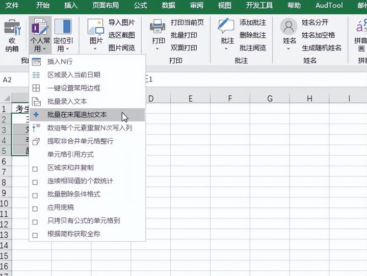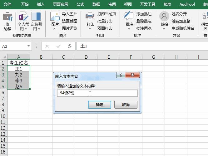 今天小编要和大家分享的是,Excel批量在文本末尾追加固定内容的操作,如下图想在每个考生的后面添加其年级和班级