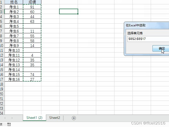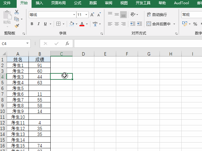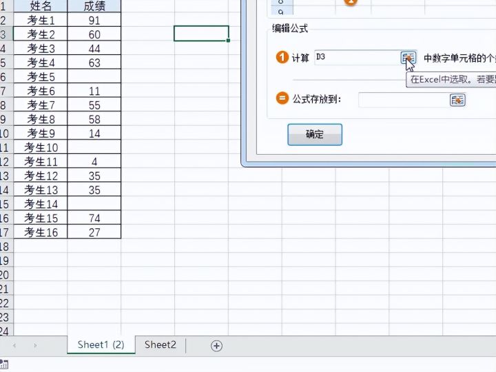 如下图所示,我们想知道有多少考生参加了考试,那我们只需要对具有成绩的考生计数就行了