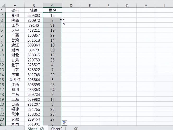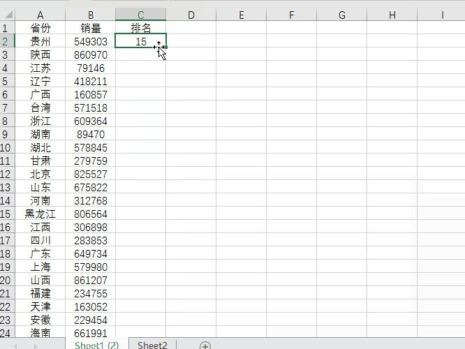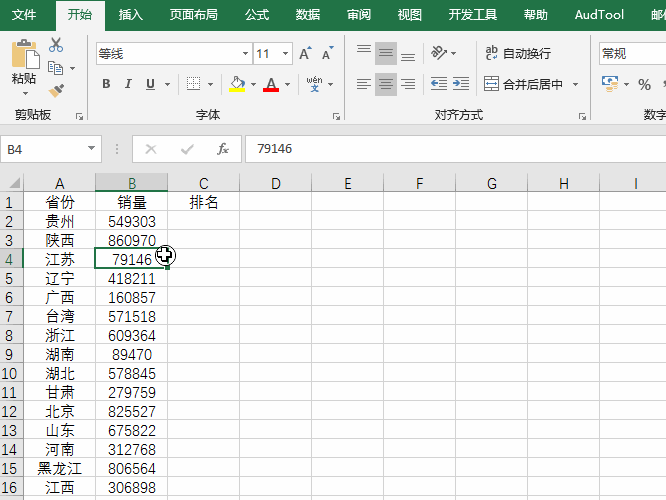 如下图所示。如何对下列的销量数据进行排名呢,有的同学说我不会排序,我也不知道什么函数。我只能一个一个从里面去找。
