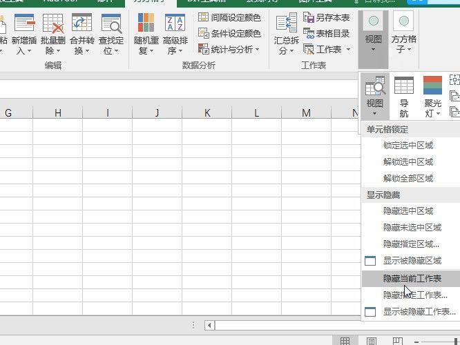 5.然后我们选择视图当中的隐藏当前工作表的操作。
