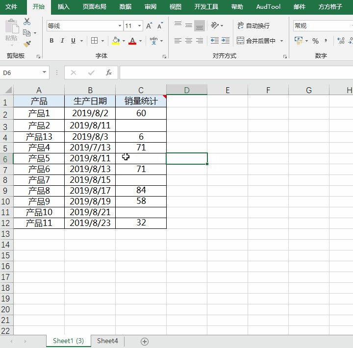 如下图所示,今天小编要通过Excel对于未统计销量的所在行整行染色标记