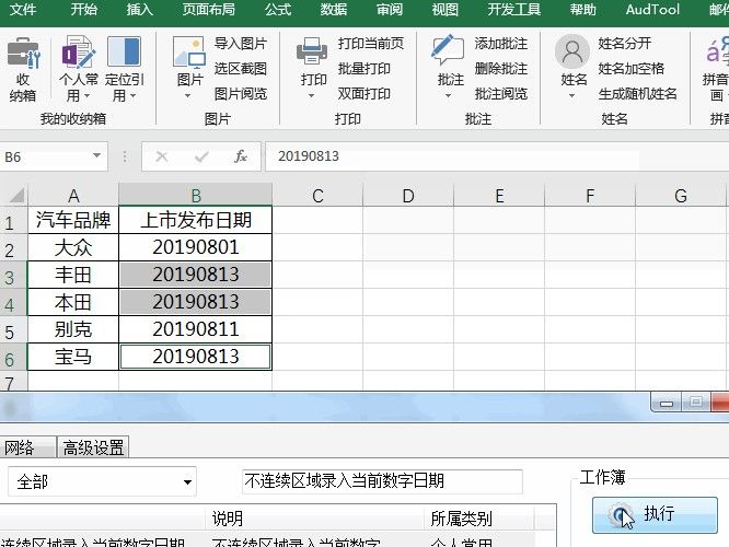 本文介绍使用VBA在Excel中为不连续区域批量输入当前日期的方法。通过自定义的插件功能实现快速操作。
