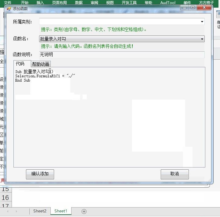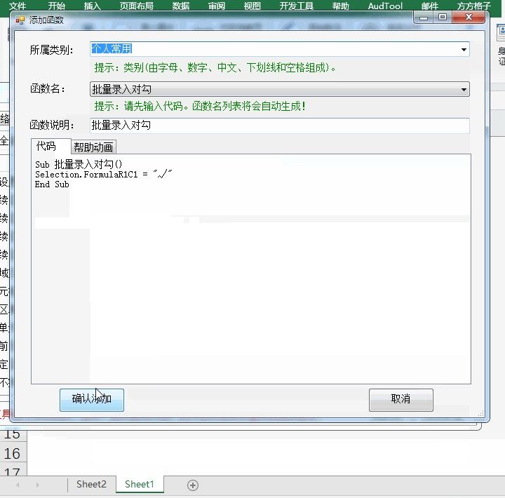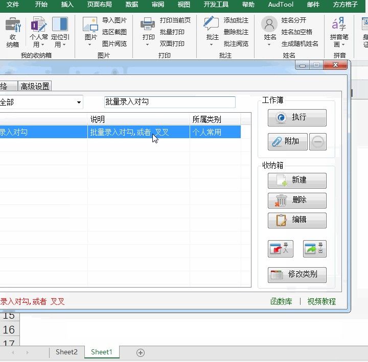 6.并设置批量录入对号的函数说明和个人常用的分类