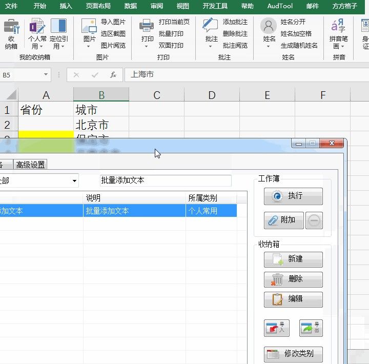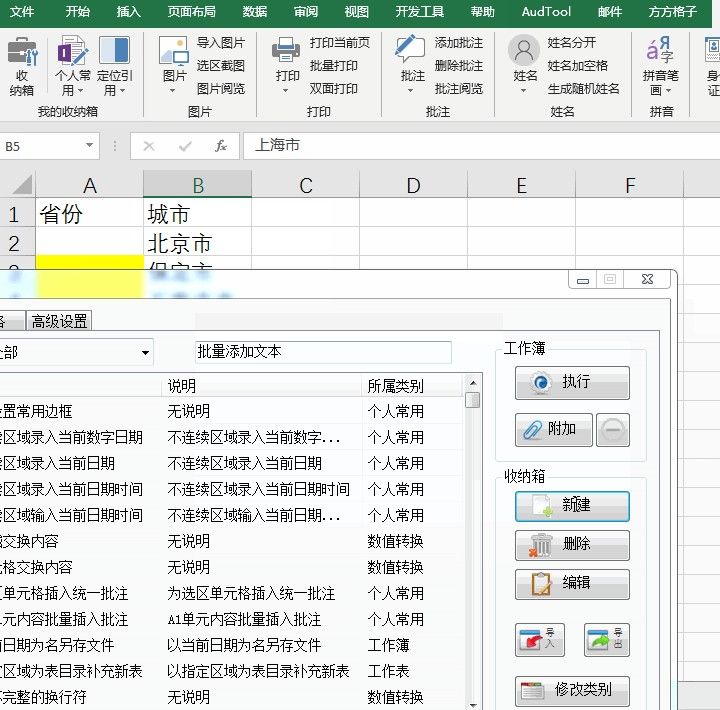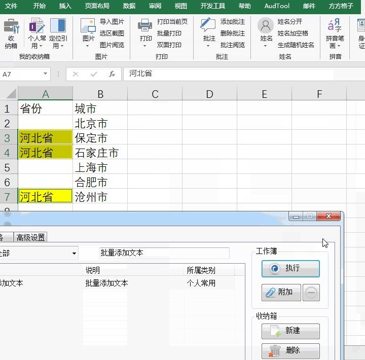 本文介绍如何使用Excel VBA及方方格子插件实现快速在指定单元格批量录入相同省份的方法,包括DIY工具箱命令的创建、代码输入及执行步骤。