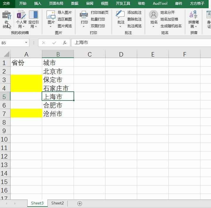 如下图所示,今天小编要和大家分享的是,Excel通过VBA形式在指定单元格批量录入相同省份的操作