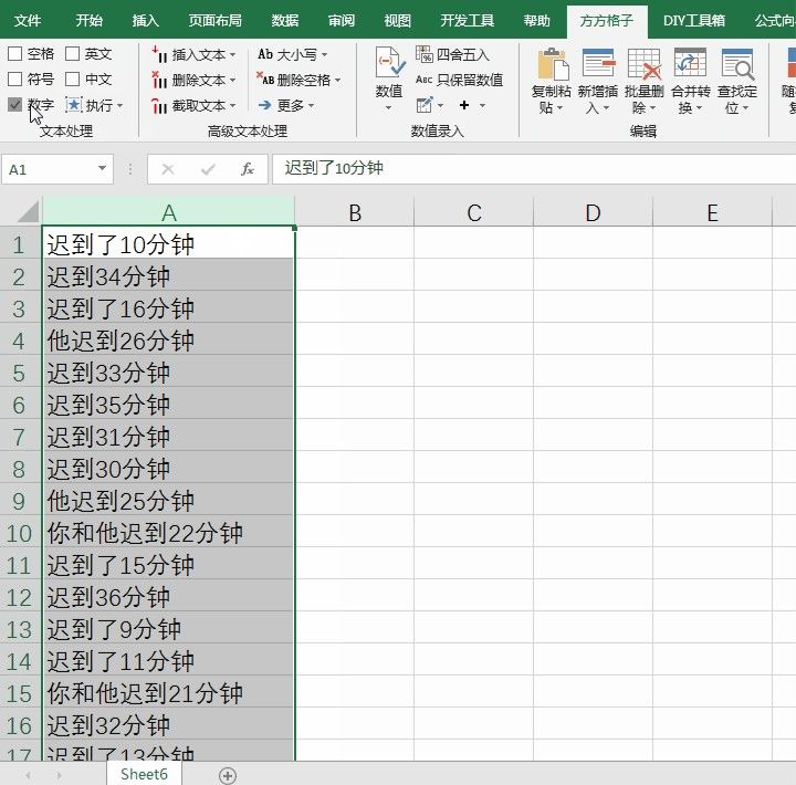 今天考勤员小王问我,说想统计出迟到在10到20分钟的一共有多少人,但是观察他从系统导出的数据,发现每个人的备案写法不一样,导致数字所在的位置一样,该如何操作呢………………