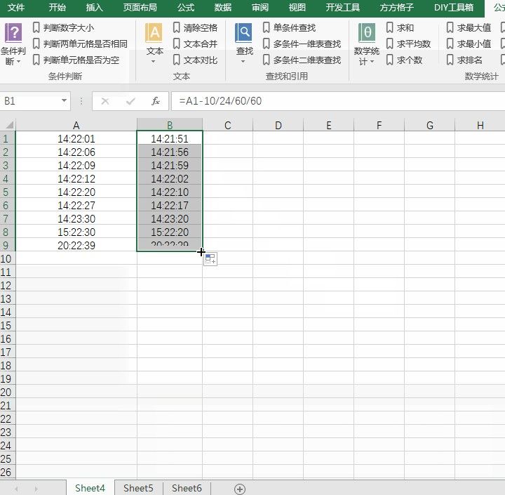 2.比如说我们想要减10秒,直接输入下图公式减去10可不可以?