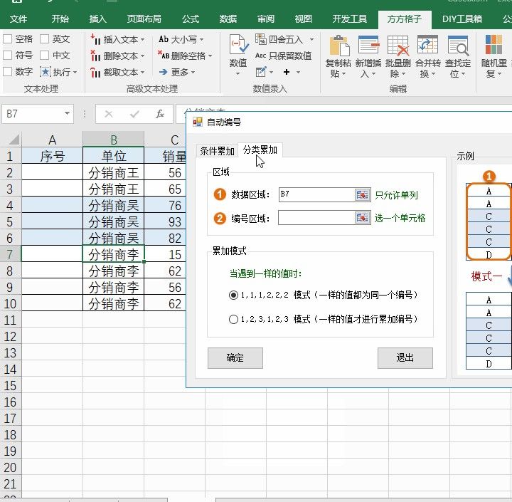 本文介绍如何使用方方格子插件在Excel中实现相同内容的累加自动编号。通过简单的步骤,可以为相同分类的数据自动分配编号,提高工作效率。