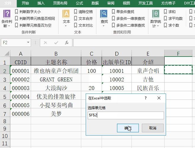 8.单击对应的F2单元格